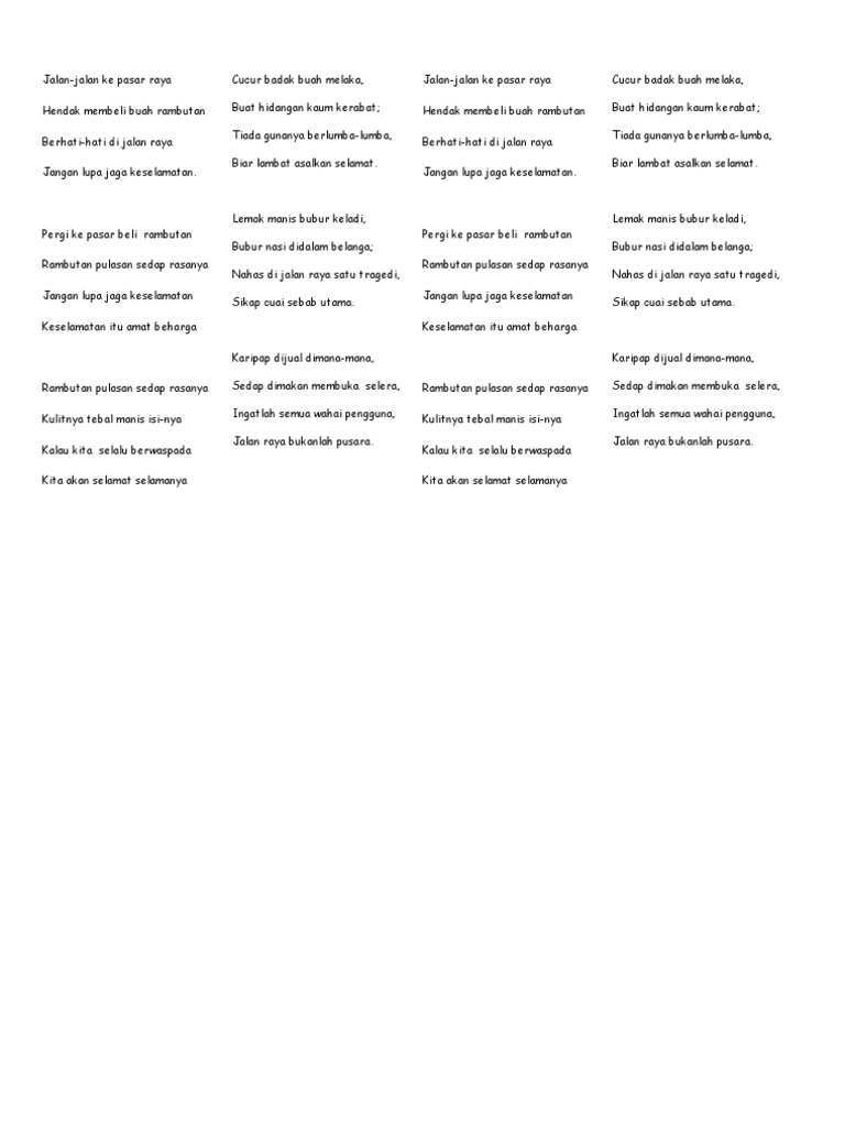 4 kerat pantun keselamatan jalan raya. Cucur badak buah melaka buat hidangan kaum kerabat. Kamu itu banyak akalnya. Pantun perkenalan salah satu kegiatan yang tidak bisa lepas dari kita sebagai makhluk hidup. Buah nanas buah mangga.