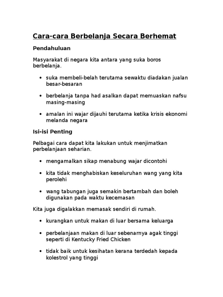 Amalan berbelanja secara berhemah karangan. Walaubagaimanapun pelajar digalakkan berfikir secara kreatif dan mengemukakan isi isi baru yang lebih bernas. Karnival beli belah sepanjang tahun terdapat pelbagai kebaikan amalan berbelanja secara berhemah. Menjimatkan wang perbelanjaan a. Ramai yang gemar berbelanja tanpa merancang.