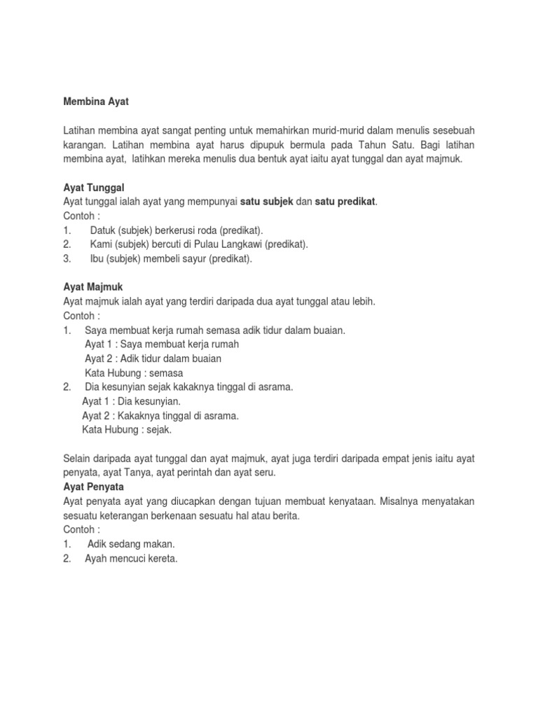 Bina ayat penyata tahun 1. Untuk melihat topik pelajaran yang lengkap. Latihan bahasa melayu ini sesuai bagi murid tahun 1 tahun 2 dan tahun 3. Murid tahap 1 ini perlu lebih banyak latihan psikomotor jari latihan menulis amat mereka perlukan. Tulis lima ayat yang lengkap tentang gambar di bawah.