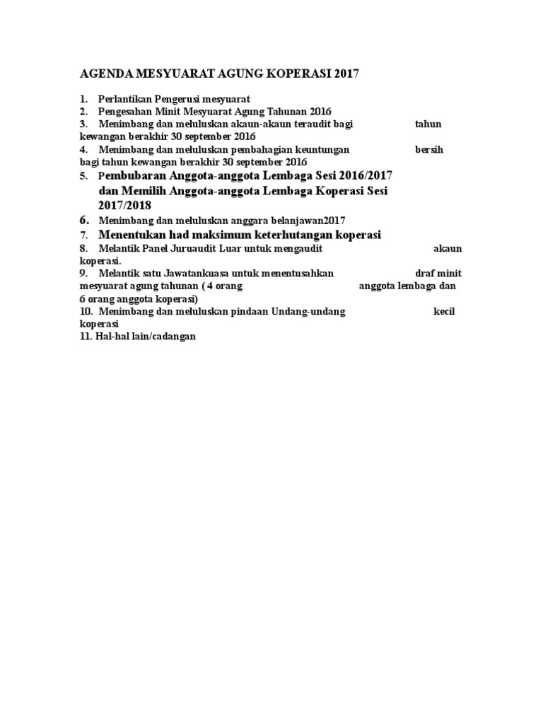 Contoh Agenda Mesyuarat Agung Koperasi
