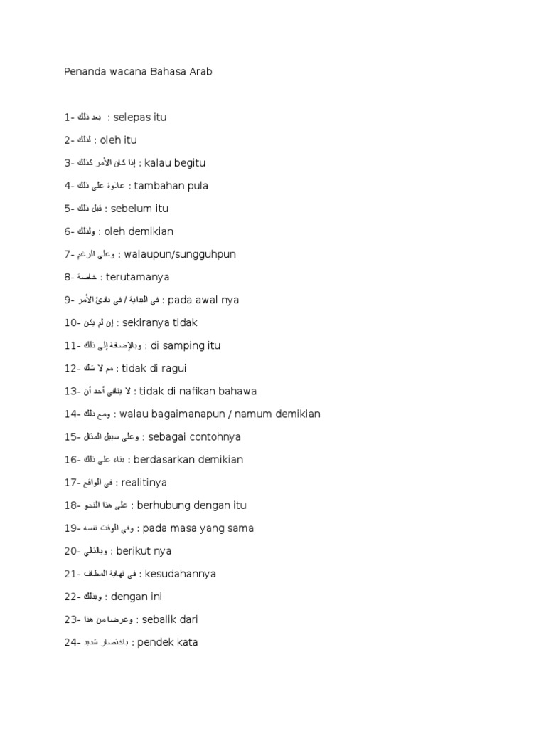 Wacana bahasa arab terdiri atas. Koleksi 50 penanda wacana yang boleh digunakan oleh semua pencinta bahasa arab terutamanya pelajar pelajar. Juga sering digunakan apabila memulakan perenggan yang baru. Fi il kata kerja isim kata benda dan huruf.