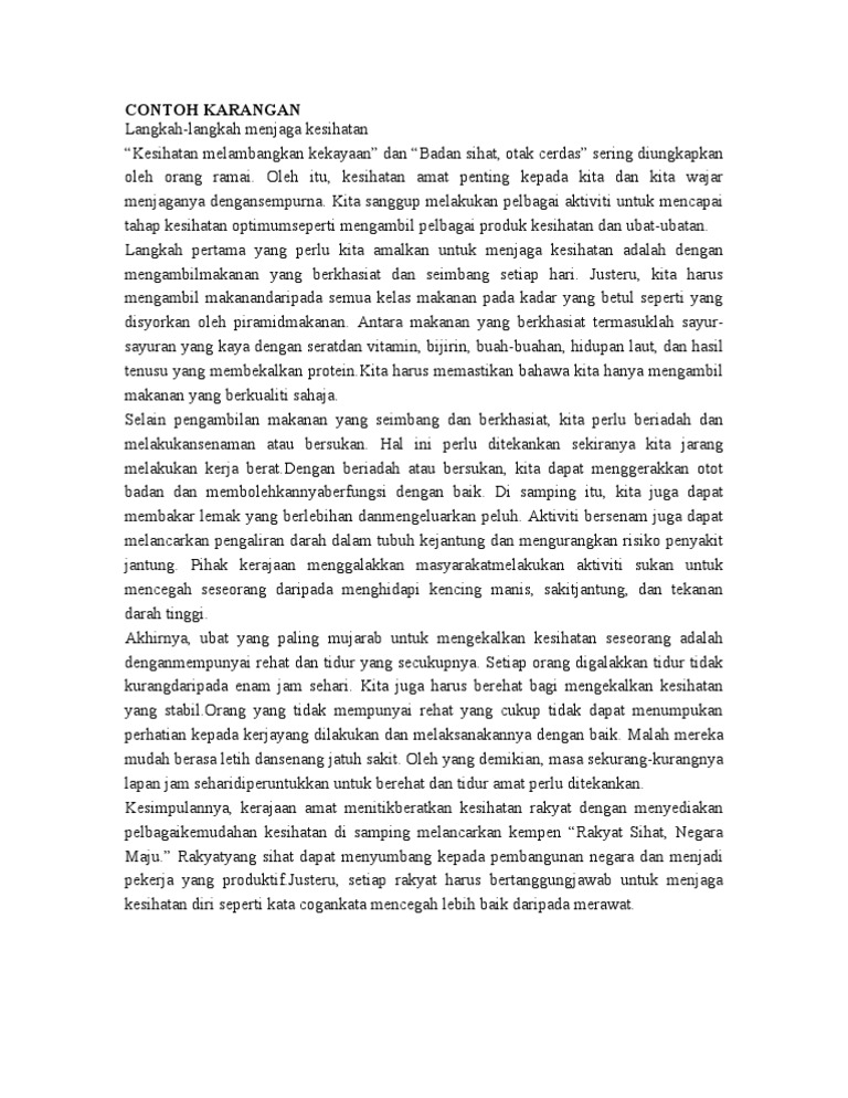 Contoh karangan bahagian b spm kesihatan. Namun begitu pelbagai penyakit kini semakin berleluasa malah ada yang menyebabkan kematian. Ada banyak cara untuk memastikan kesihatan seseorang itu dalam keadaan baik. Tulis karangan tentang cara cara menjaga kesihatan diri. Sudah semestinya setiap individu menginginkan tahap kesihatan yang baik buat diri masing masing.