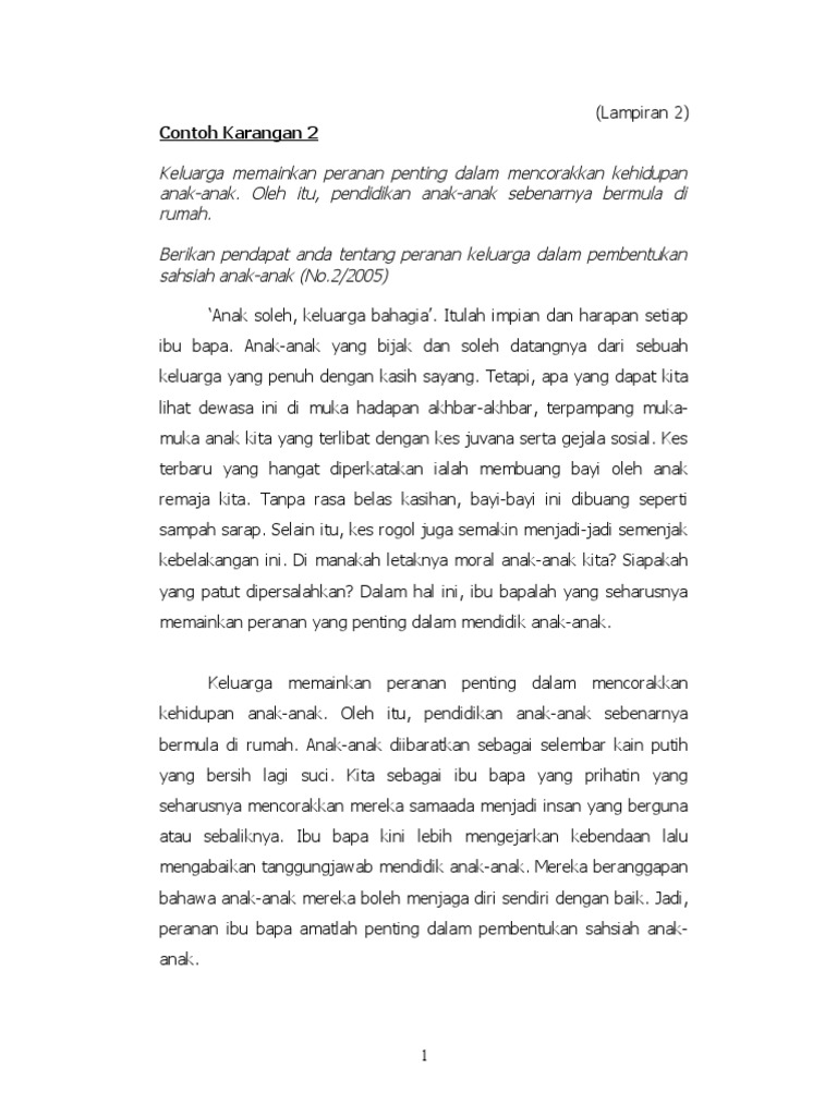 Teks soalan bahagian pemahaman antologi soalan 2 b 2 c dan 2 d dan novel soalan 4 a dan 4 b telah berubah bermula soalan spm 2017. Contoh karangan bahasa melayu spm kertas 1 bahagian b peranan ibu bapa menggalakkan aktiviti kokurikulum 8 43 pm contoh karangan spm karangan tidak berformat peranan ibu bapa spm kertas 1 kini ibu bapa terlalu mementingkan pencapaian akademik anak anak mereka.