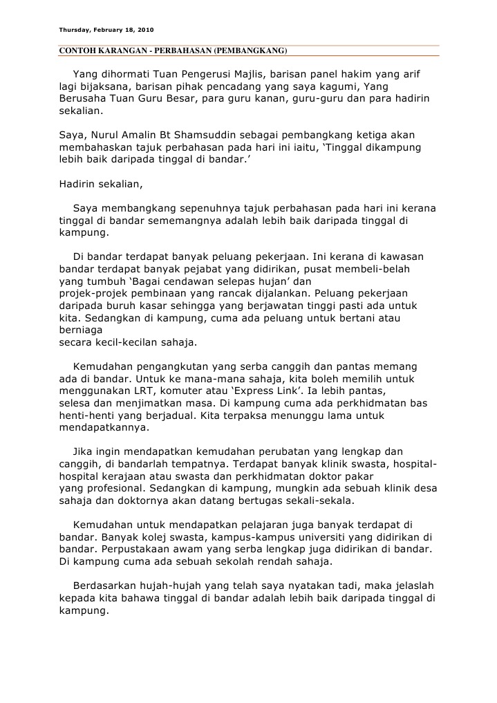 6 55 pm karangan spm spm share this. Semasa di sekolah rendah kita perlu menduduki peperiksaan upsr. A perbahasan berbentuk pertandingan anda dikehendaki berpendirian tetap serta perlu mematuhi segala prosedur perbahasan yang sepatutnya anda haruslah memulakannya dengan kata kata hormat atau kata alu aluan. Contoh karangan perbahasan karangan jenis perbahasan.