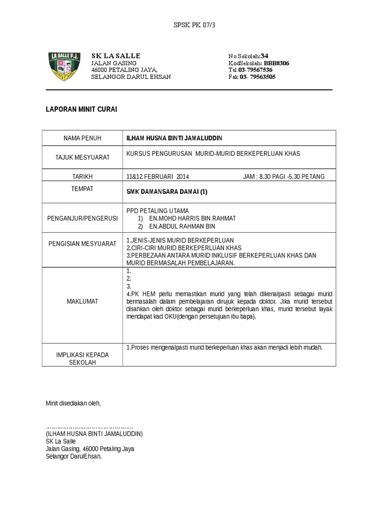 0 0 upvotes mark this document as useful 0 0 downvotes mark this document as not useful embed. Contoh minit curai taklimat mat rodi abdulah. Pn hanita binti jamil guru besar kehadiran. Format minit curai sahmizawati kamis.