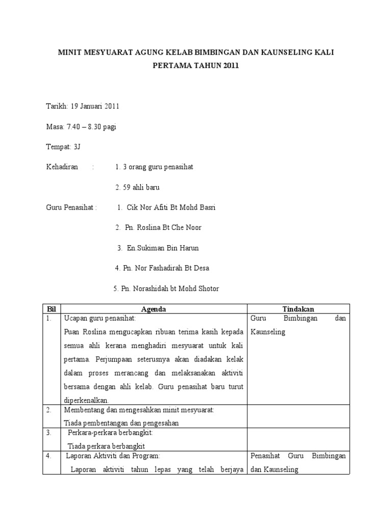 Contoh minit mesyuarat kelab kali pertama. Audit skpmg2 2017 bermula april 2018. 1 0 ucapan pengerusi mesyuarat 1 1 dato mohd ali bin ayat selaku pengerusi mesyuarat telah mengucapkan jutaan terima kasih kepada semua ahli yang hadir ke mesyuarat agung yang pertama ini. 1 1 pengerusi mengucapkan terima kasih atas kedatangan guru guru bahasa malaysia. Mesyuarat kokurikulum kali pertama sesi persekolahan 2019.