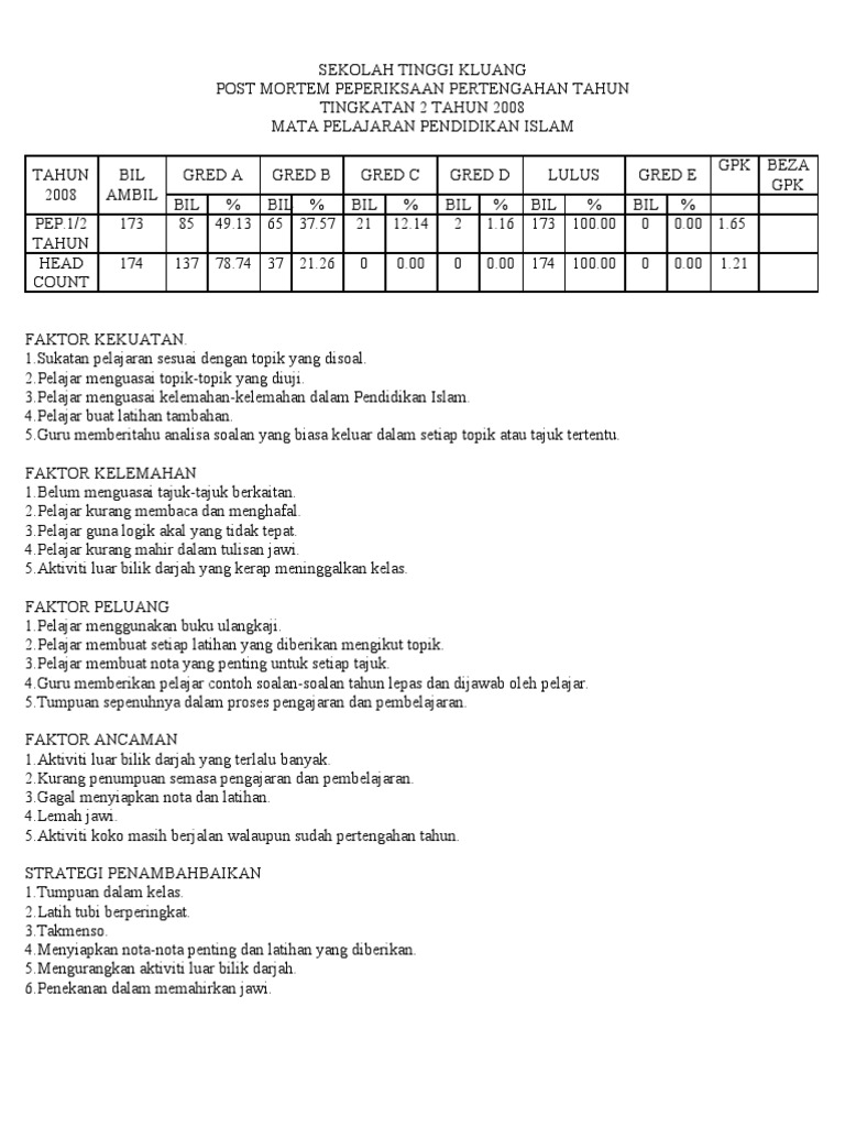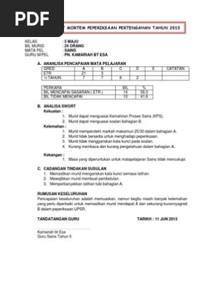 Guru guru matapelajaran krk tingkatan 1 3 boleh memuat turun softcopy format laporan post mortem peperiksaan pertengahan tahun krk 2011 melalui link di bawah. Post mortem peperiksaan pertengahan pendidikan isl. Fokus mesyuarat adalah pencapaian setiap subjek upsr kelemahan dan kekuatan serta langkah langkah mengatasi kelemahan dan program susulan. Subjek matematik 3rk1 dan 3rk2 anda tidak perlu membuat 2 laporan berasingan.