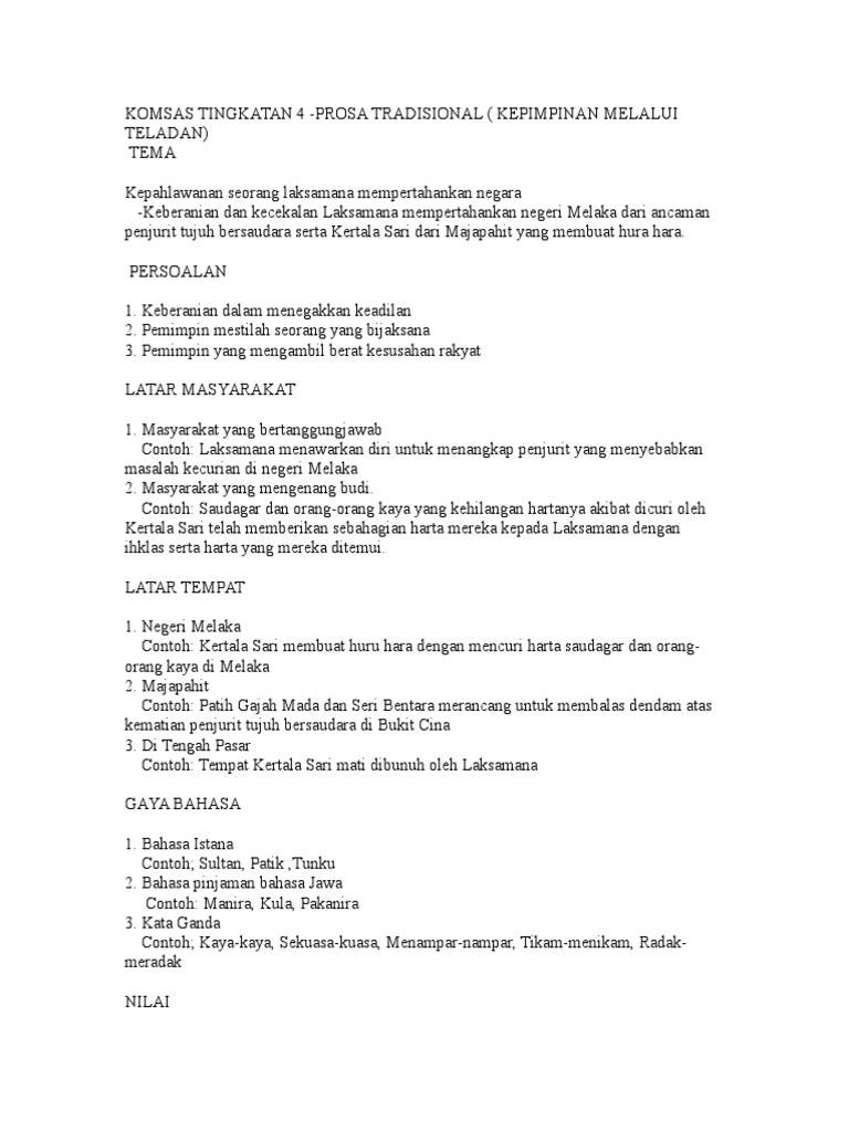 Insya allah menerusi bimbingan guru di bilik darjah proses mempelajari teks asal kepimpinan melalui teladan menjadi sangat mudah. Komsas tingkatan 4. Perbuatan ibu kertala sari menceritakan kisah kematian suaminya kepada kertala sari adalah wajar. Prosa tradisional tajuk.