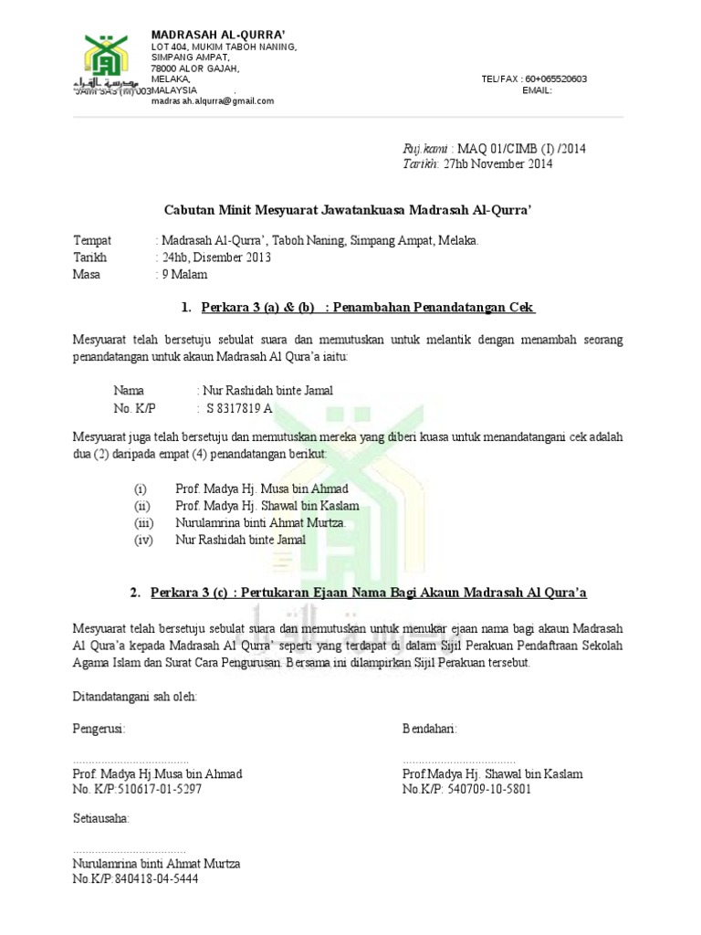 9 00 pagi 1 00 petang tempat. Apa yang anda semua perlu sediakan adalah. Contoh minit mesyuarat minit mesyuarat merupakan satu laporan mengenai perkara atau hal yang dibincangkan dan diputuskan dalam sesuatu mesyuarat. Slps itu barulah maik akn keluarkan surat pengesahan jawatankuasa cara isi borang maik.