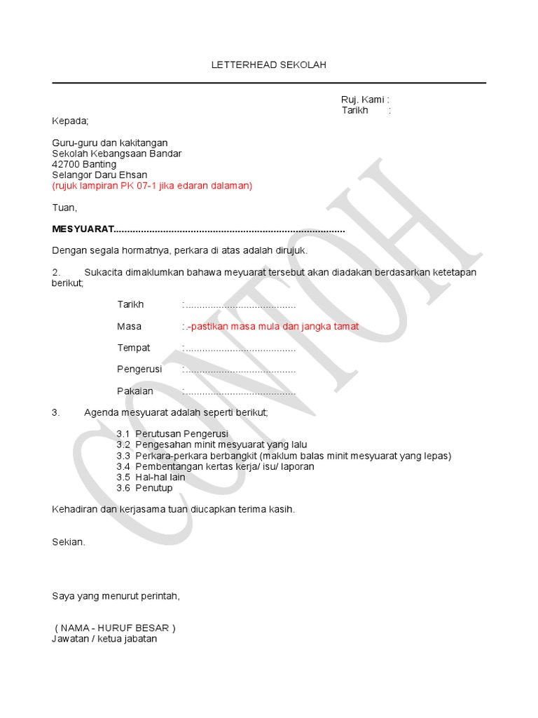 Ianya penting kerana minit mesyuarat merupakan sumber rujukan masa hadapan dimana pada kelazimannya format minit disusun mengikut agenda mesyuarat dan perlu kelihatan kemas dan teratur. Academia edu is a platform for academics to share research papers. Surat panggilan mesyuarat minit mesyuarat 1. Home surat 25 contoh surat edaran minit mesyuarat.
