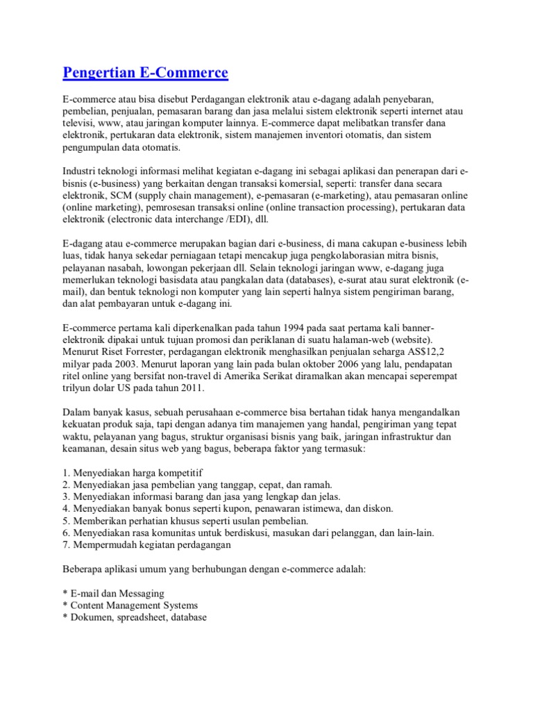 E commerce merujuk kepada perniagaan atau perdagangan yang menggunakan peralatan dan infrastruktur teknologi komunikasi dan maklumat sebagai medium untuk tujuan komunikasi dan juga transaksi. With epermit permit application is submitted electronically with approval received similarly as well from multiple permit issuing agencies. Secara tradisinya pembeli b2b adalah yang kita sebut sebagai pembeli profesional iaitu mereka mempunyai tahap akauntabiliti yang lebih tinggi ketika membelanjakan wang syarikat. Definisi e dagang untuk tahun 2020 ketahui apa maksud e commerce dan bagaimana memulakan perniagaan e dagang.