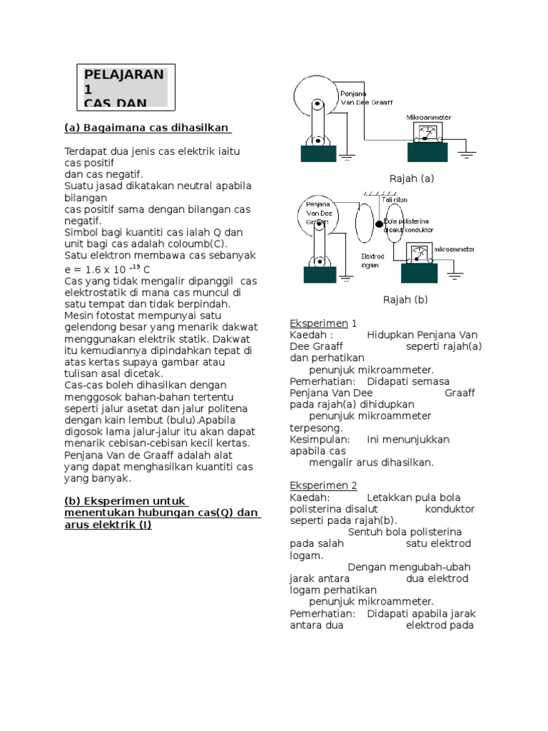 Generator van de graff merupakan alat yang dapat menghasilkan muatan listrik statis dalam jumlah yang sangat besar melalui proses gesekan. R 0 025 a pencapahan kerajang emas akan menunjukkan kehadiran cas. Van de graff pada tahun 1029. Arus elektrik adalah kadar pengaliran cas elektrik melalui suatu konduktor.