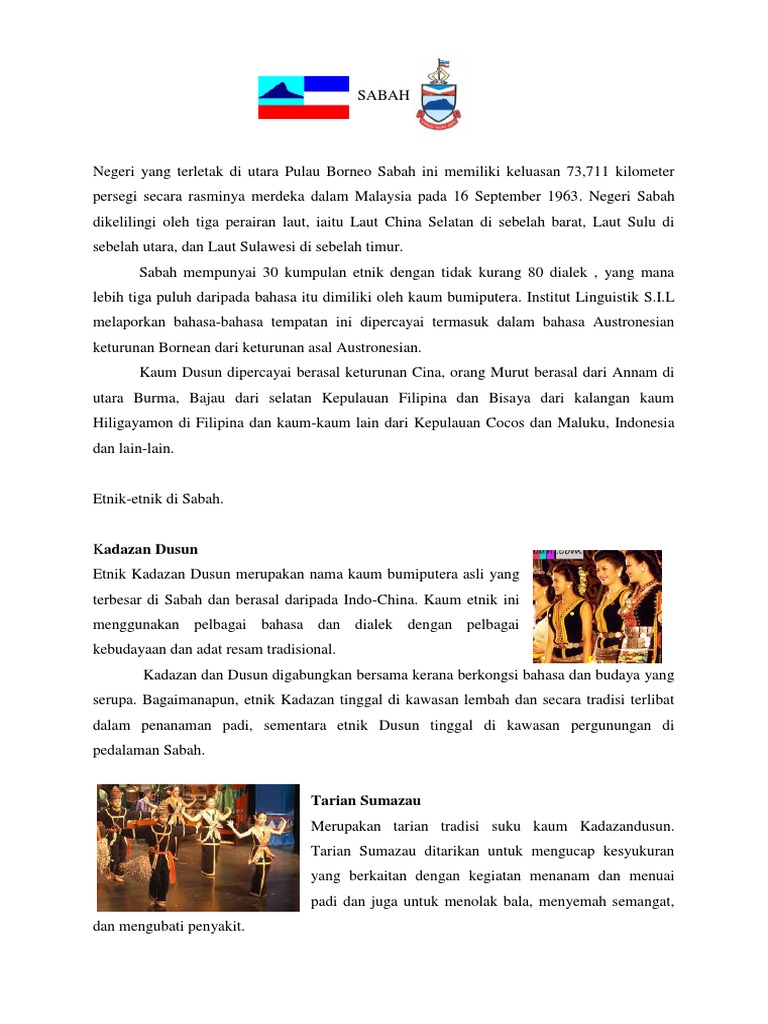 Manakala terdapat juga suku kaum bukan peribumi sabah yang boleh menikmati faedah bumiputera. Laman ini kali terakhir disunting pada 12 19 23 oktober 2020. Kadazan dusun adalah kumpulan etnik yang terbesar di sabah yang membentuk hampir 30 daripada keseluruhan jumlah penduduk. Sabah yang juga dikenali sebagai negeri di bawah bayu merupakan negeri kedua terbesar di malaysia dengan kawasan menjangkau 72 000 kilometer persegi.