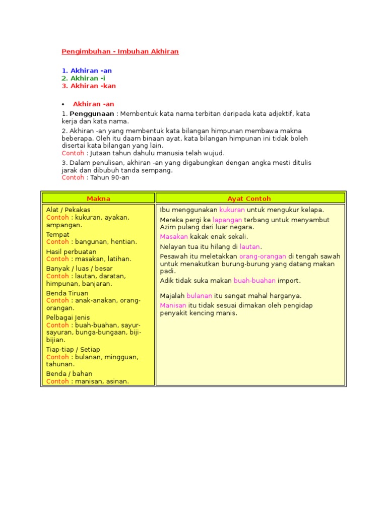 Sambut hari kemerdekaan tahun ini diadakan secara besar besaran. Imbuhan akhiran add to my workbooks 0 download file pdf embed in my website or blog. Untuk membentuk kata nama. Posted by tan mei ing at 14 30.