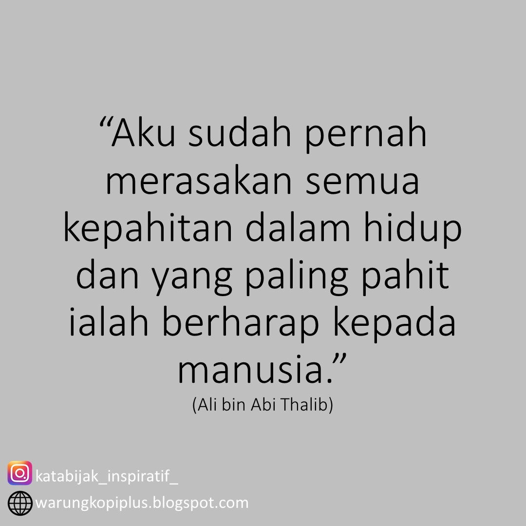 Alikhlasmusholaku top jangan berharap kepada manusia karena engkau. Karena itu mari kita kurangi berharap besar pada orang lain. Ali bin abi thalib lahir sekitar 15 september 601 13 rajab 21 sh di ka bah makkah jazirah arab wafat 29 januari 661 21 ramadhan 40 h pada usia 59 tahun di kufah mesopotamia. Aku sudah merasakan semua kepahitan hidup dan yang paling pahit adalah berharap kepada manusia.