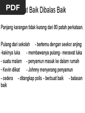 Sebuah karangan dikatakan baik jika telah memenuhi beberapa syarat yaitu memiliki kesatuan koherensi urutan fikiran kalimat utama dan kalimat penjelas. Ada juga kebaikan yang dibalas kebaikan tetapi nilainya tidak setimpal dengan kebaikan yang kita buat. Ketika merangka karangan carilah fakta dan isi yang terbaik. Ayuh kita ke sana segera kami pun pergi ke alamat rumah pemilik dan memulangkan kepadanya.