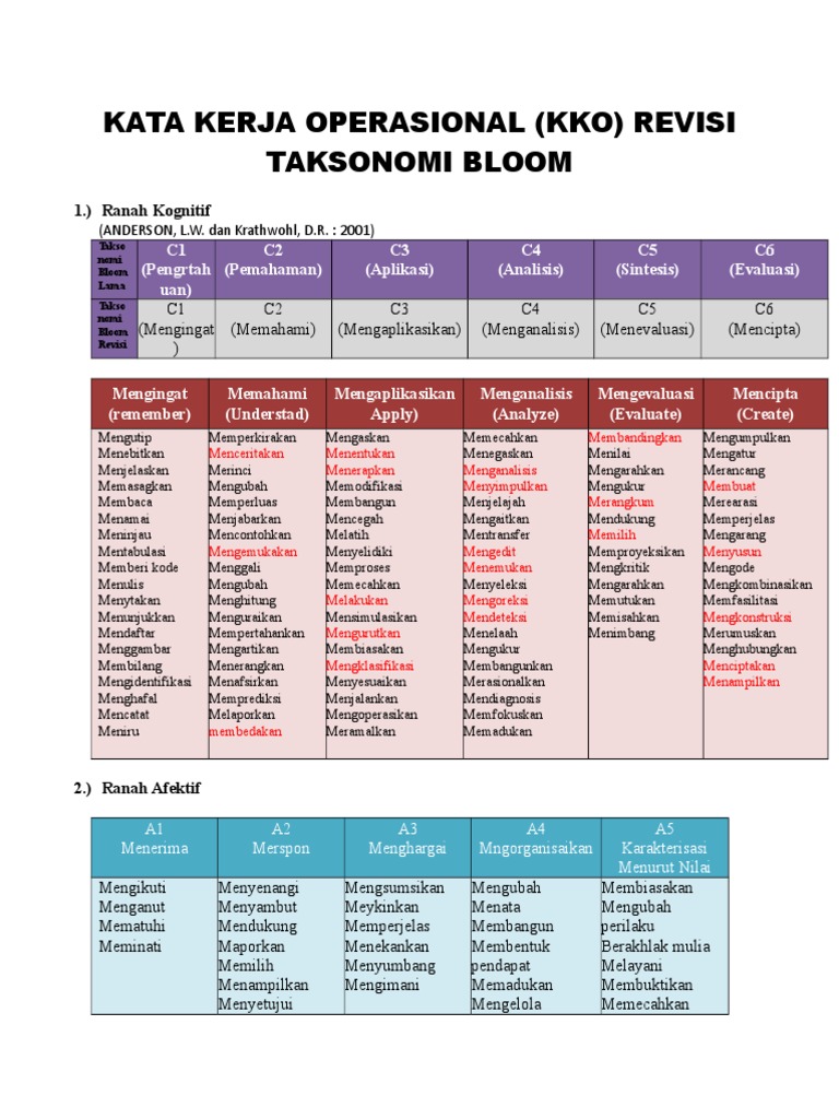 Kata kerja operasional kko revisi taksonomi bloom 1 ranah kognitif anderson l w.