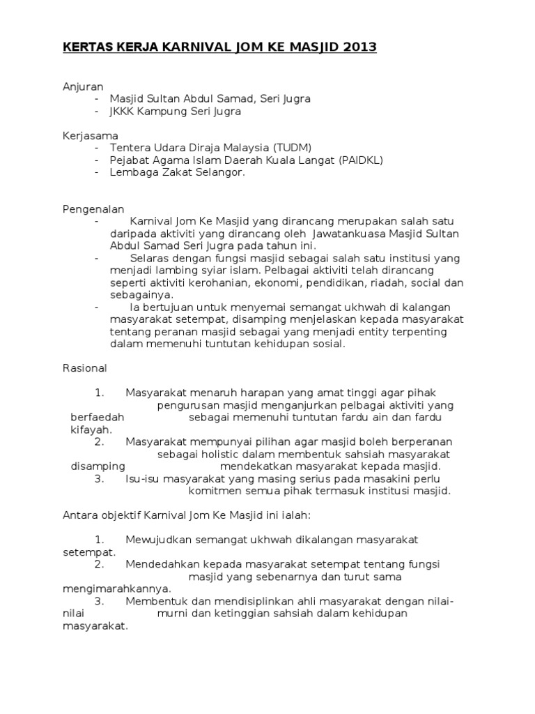 Kertas kerja ini disediakan untuk member maklumat persiapan kepada jabatan dan pasukan yang akan mengambil bahagian dalam kejohanan ini serta mendapatkan kelulusan daripada ahli. Info terkini pertandingan memancing di malaysia has 27 563 members. 1 1 menyelaras aktiviti jawatankuasa jawatan slideshare uses cookies to improve functionality and performance and to provide you with relevant advertising. Di situ anda boleh pilih beberapa kertas kerja perniagaan yang sudah disediakan yang boleh di edit berdasarkan keperluan anda sendiri.