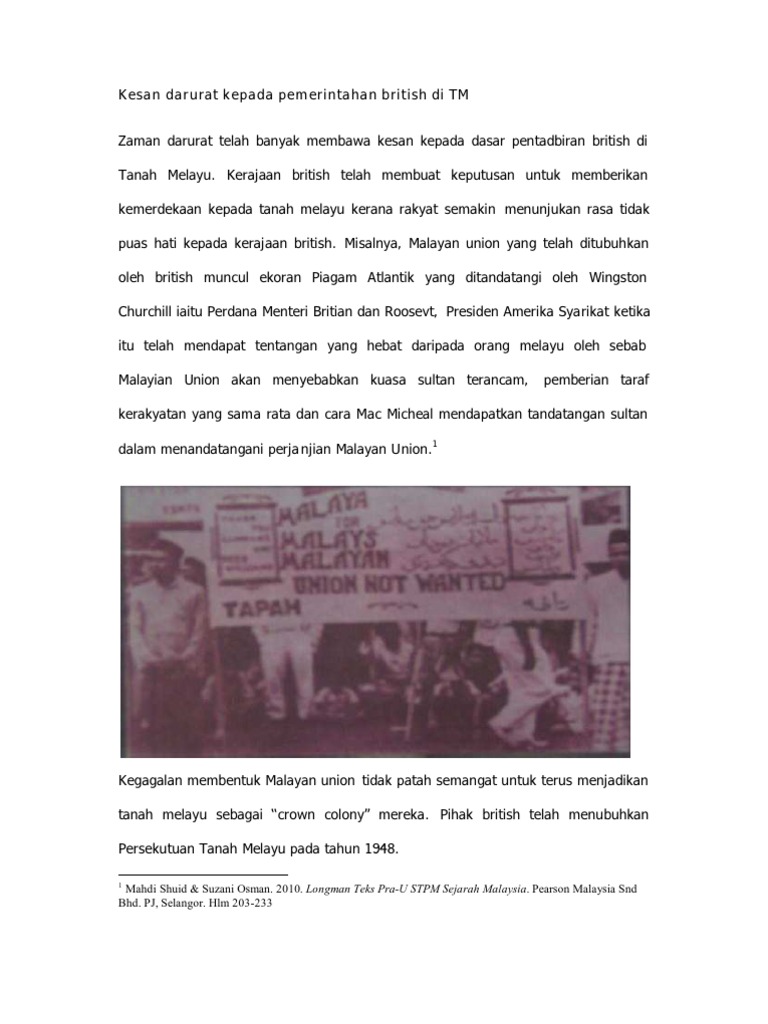 Kesan darurat di tanah melayu stpm. Zaman darurat ini telah meninggalkan pelbagai kesan kepada seluruh penduduk tanah melayu dari aspek ekonomi politik dan sosial. Darurat di tanah melayu 1948 1960. Keganasan yang dilakukan oleh pkm telah memaksa pihak british mengisytiharkan darurat di seluruh tanah melayu pada 15 julai 1948 yang bertujuan menghapuskan pemberontakan komunis di tanah melayu. Strategi pkm dan pemerintah di tanah melayu kajian ini memberi tumpuan kepada peristiwa darurat di tanah melayu yang bermula pada tahun 1948 hingga tahun 1960.