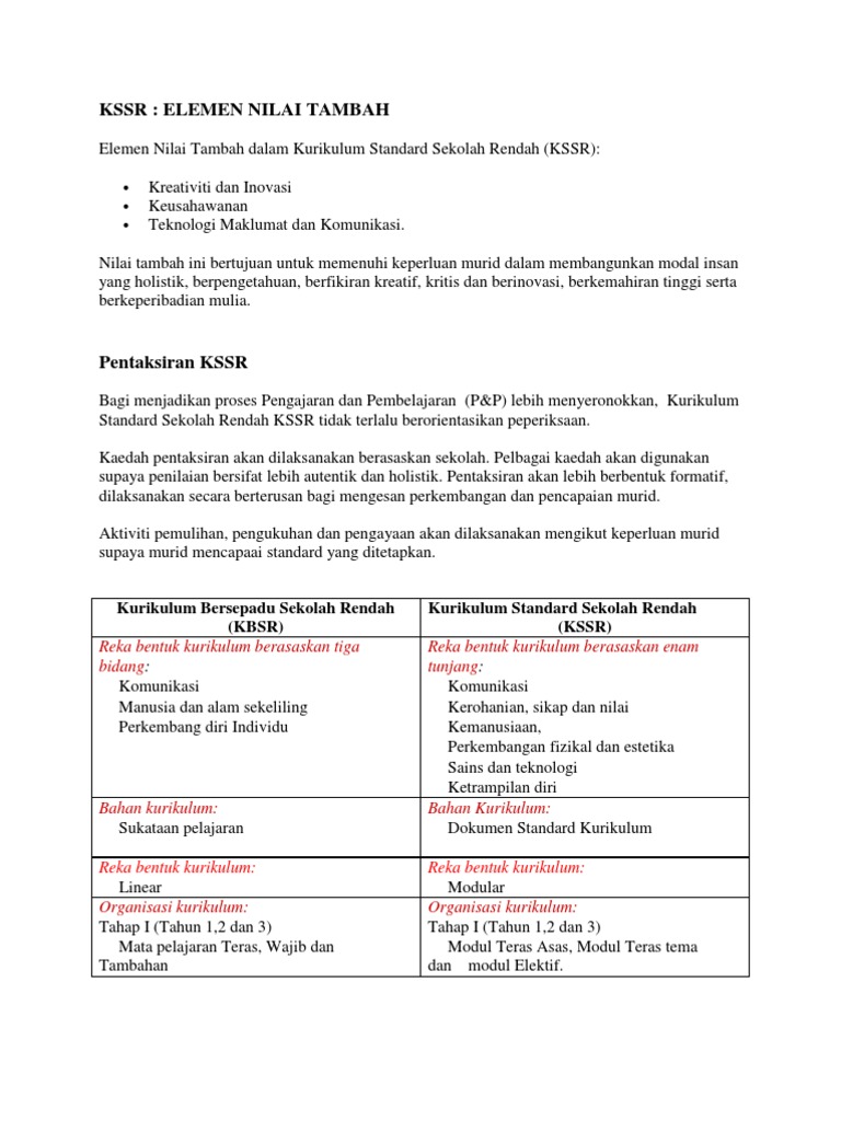 Kurikulum bersepadu sekolah rendah dalam aspek pentaksiran. Menurut tan sri alimuddin mohd dom ketua pengarah pelajaran malaysia kssr tidak akan menggantikan tetapi beriringan dengan kurikulum bersepadu sekolah rendah kbsr. Konsep kurikulum dapat dikategorikan kepada 5 iaitu a kurikulum menjadi dokumentasi khas dan panduan. Kurikulum terdiri daripada cadangan cadangan berhubung dengan matlamat objektif ciri ciri pelajar pengalaman pembelajaran isi kandungan pelajaran kaedah bahan dan cara penilaian. Prinsip kurikulum bersepadu sekolah rendah.