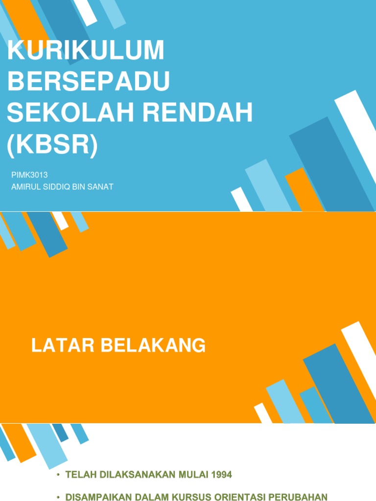 Perlaksanaan kbsr adalah susulan daripada perubahan yang dilakukan oleh laporan jawatankuasa kabinet mengenai perlaksanaan dasar pelajaran yang dikeluarkan pada tahun 1979. 1993 kurikulum baru sekolah rendah ditukar kepada kurikulum bersepadu sekolah rendah. Di peringkat sekolah menengah penerapan nilai nilai murni telah dilaksanakan ketika penggubalan kurikulum bersepadu sekolah menengah kbsm pada tahun 1988 di. Langkah ini telah dilaksanakan di peringkat rendah melalui kurikulum bersepadu sekolah rendah kbsr tahun 1982 di sekolah percubaan dan tahun 1983 di semua sekolah rendah di malaysia.