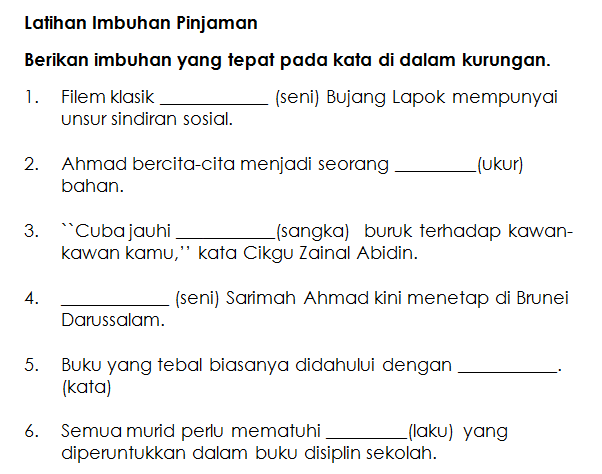 Latihan imbuhan pinjaman tahun 5. Soalan latihan objektif 3 imbuhan akhiran. Imbuhan pinjaman latihan 4 isi tempat kosong dengan jawapan yang paling sesuai. Imbuhan pinjaman other contents. Berumur lima tahu mulai tahun hadapan.