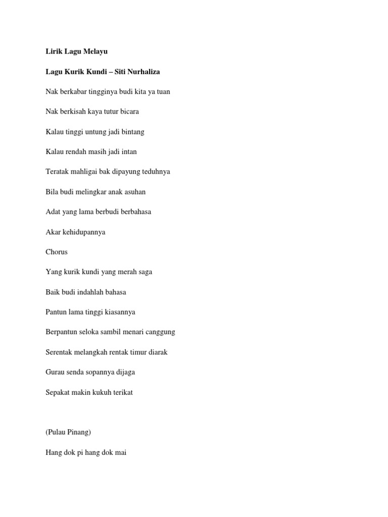 Teratak mahligai bak dipayung teduhnya bila budi melingkar anak asuhan adat yang lama berbudi berbahasa. Lirik lagu warna dunia siti nurhaliza. Chorus yang kurik. Lirik lagu kurik kundi.