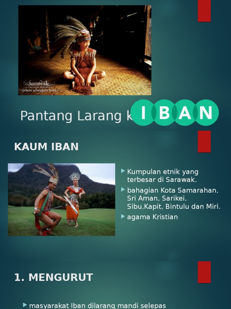 Di atas kepercayaan kepada semangat padi maka pelbagai perayaan gawai dilakukan pada masa tertentu disepanjang tahun gawai diketuai oleh beberapa ketua tertentu bergantung kepada jenis dan tujuannya. Kaum iban amat menekankan pentang larang sewaktu mengandung dan selepas bersalin. Pantang larang sewaktu mengandung bukan sahaja dikenakan kepada wanita yang sedang mengandung malah si suami turut dikenakan pantang larang contohnya mereka tidak dibenarkan memotong pokok yang menjalar di atas tanah kerana dikhuatiri berlakunya pendarahan berterusan semasa si ibu melahirkan. Pdf masyarakat melayu di sarawak merupakan golongan peribumi kedua terbesar selepas kaum iban dan kaya dengan kepercayaan serta amalan turun temurun.