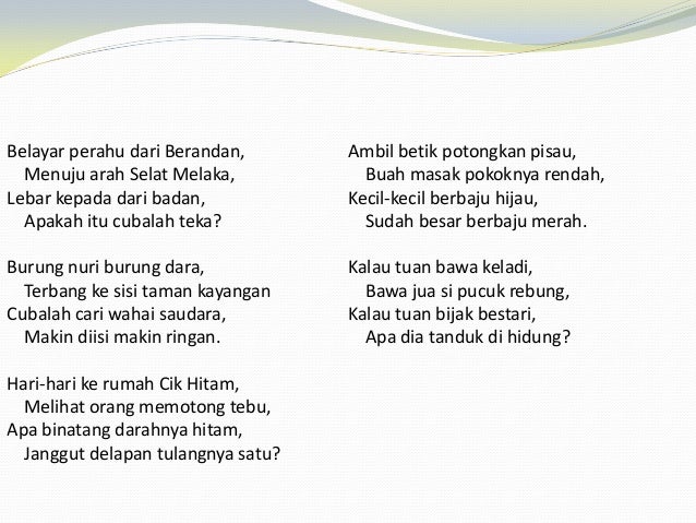 Pantun nasihat kanak kanak 4 kerat. Jenis jenis pantun lain pantun enam kerat belayar perahu membawa kuini ke tanjung jati mengadap paduka. Pantun empat kerat jenaka dan sindiran docx document pantun its type. Pantun empat kerat ini sangat sesuai diajarkan kepada kanak kanak prasekolah kerana ia menggunakan perkataan dan ayat yang mudah difahami oleh kanak kanak so apalagi. Pantun nasihat wednesday march 17 2010.
