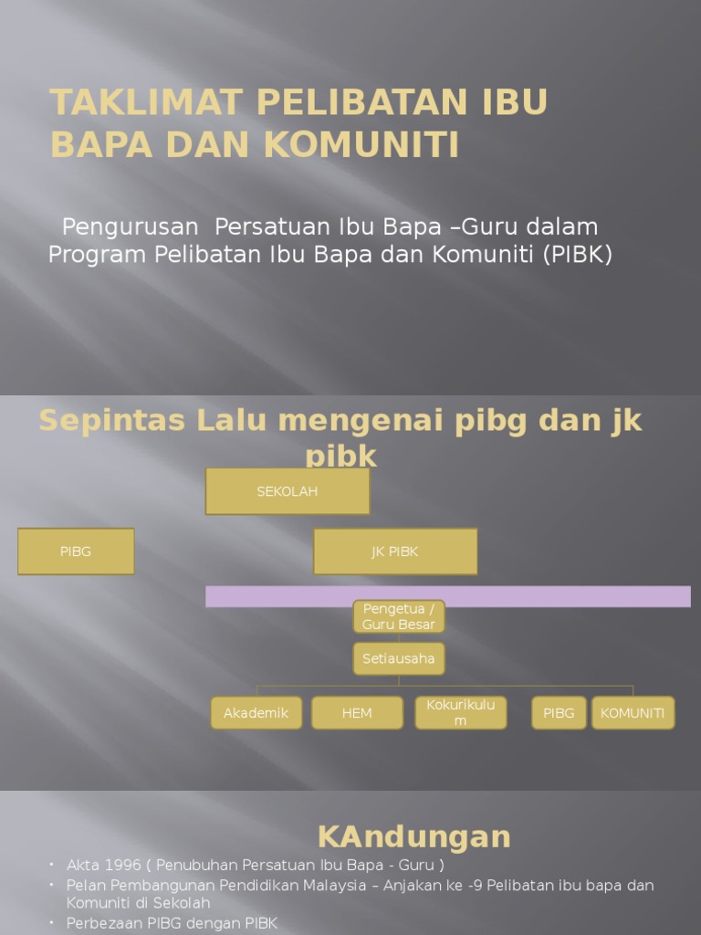 Pibk bermaksud penglibatan ibu bapa dan komuniti.