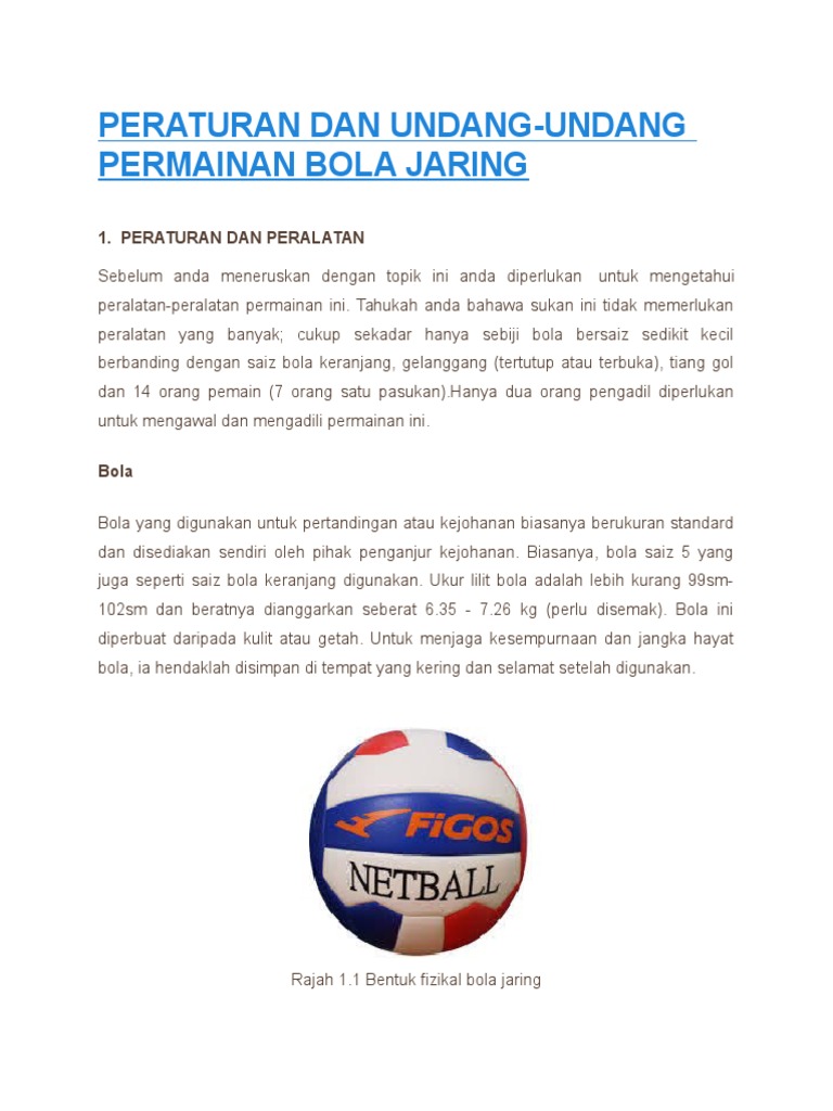 Penalti akan diambil dari tempat pemain yang membuat kesalahan kecuali jika tindakan itu merugikan pasukan yang membuat penalti. Bola jaring juga mempunyai beberapa peraturan asas yang telah ditetapkan iaitu. Pendapat lain mengatakan pengertian bola voli adalah suatu cabang olah raga yang dimainkan oleh dua group yang saling berlawanan dimana setiap group memiliki enam orang pemain. 1 3 peraturan undang undang asas permainan bola jaring setiap permainan mempunyai peraturan ataupun undang undang yang perlu dipatuhi semasa bermain.