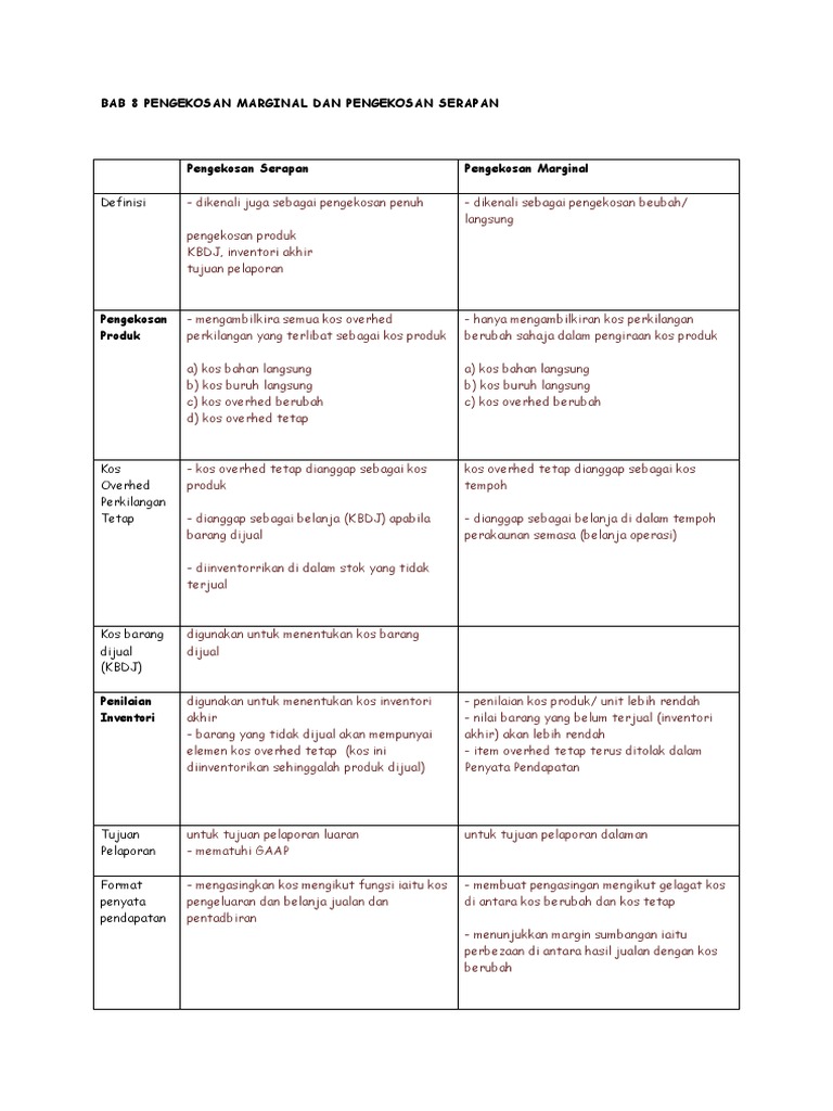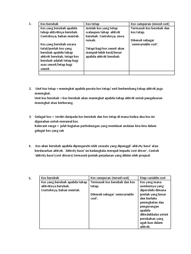 Kos berubah dan kos tetap.