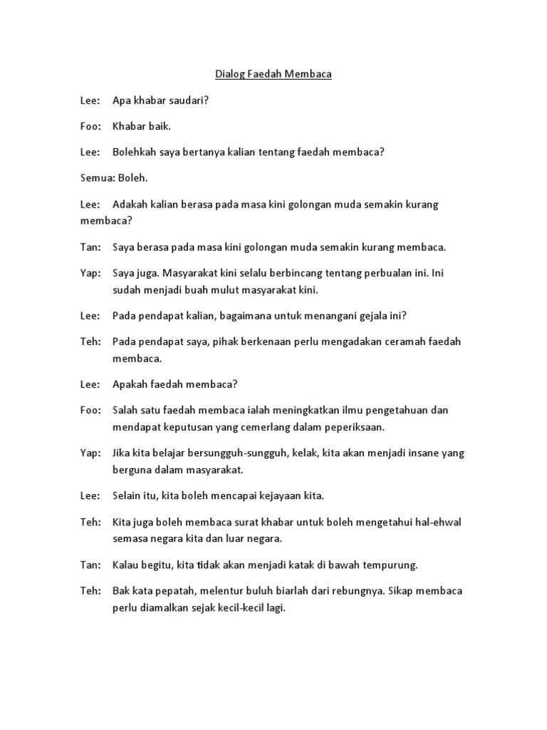 Contoh dialog bahasa melayu 2 orang contoh dialog bahasa indonesia 2 orang contoh dialog bahasa jawa contoh dialog bahasa inggris singkat contoh dialog bahasa inggris tentang pendidikan contoh dialog bahasa inggris pasien dan perawat contoh dialog bahasa inggris contoh dialog congratulation contoh dialog suggestion contoh dialog negosiasi contoh dialog wawancara. Karangan dialog pt3 terbahagi kepada 2 jenis satau adalah dialog tidak format apabila perbualan untuk mengucapkan takziah tahniah bertanyakan kahbar dan sebagainya. Al quran dalam bahasa melayu apk download android books al quran dalam bahasa melayu screenshot 4. Contoh dialog bahasa melayu 2 orang untuk lisan.