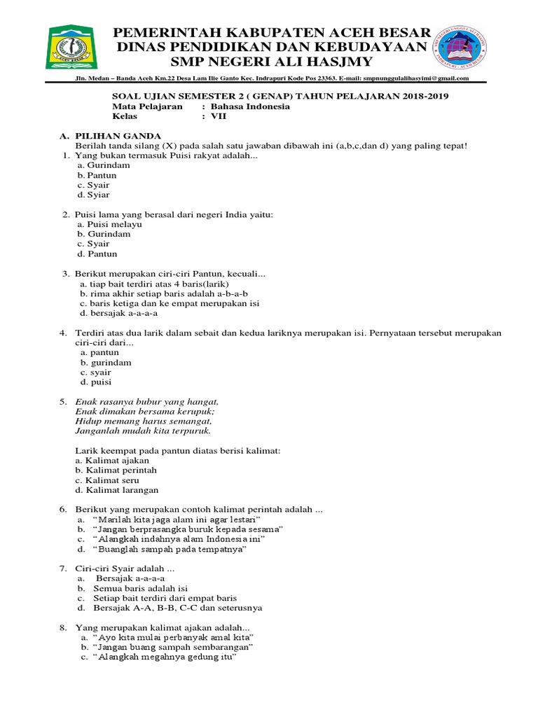 Itulah tadi kumpulan soal teks anekdot pilihan ganda dan jawabannya kelas 10 bagi anda yang ingin mengetahui contoh soal pilihan ganda teks ceramah dan jawabannya silahkan lihat link di bawah ini. Terdiri atas dua bagian yaitu sampiran dan isi. Pengertian pantun adalah sebuah karya yang bukan hanya mempunyai rima dan irama yang indah. Pantun adalah karya sastra warisan nenek moyang yang dipengaruhi oleh sastra melayu.