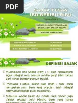 Semoga perkongsian nota nota rujukan bahasa melayu contoh contoh karangan bahan bahan pembelajaran dan pengajaran pt3 pentaksiran tingkatan 3 tingkatan 1 tingkatan 2 tingkatan 3 dalam post di blog bumi. Komponen sastera dan novel bm bahasa melayu. Prosa bahagia sesudah derita. Maksud tema persoalan nilai pengajaran gaya bahasa nada sajak pesan ibu beribu ribu k.
