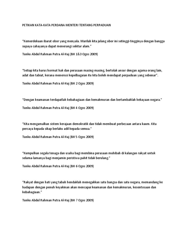 Ytm tunku abdul rahman putra 31 ogos 1957 22 sept 1970 jangan sesiapa berfikir kita telah sampai ke penghujung jalan. Pada tahun 1956 tunku mengetuai rombongan ke london untuk berbincang dengan kerajaan british mengenai kemerdekaan tanah melayu. 14 waktu lapang atau menghilangkan rasa bosan namun jangan sampai fokus kita. Bm43 poster kata kata hikmah pemimpin negara.