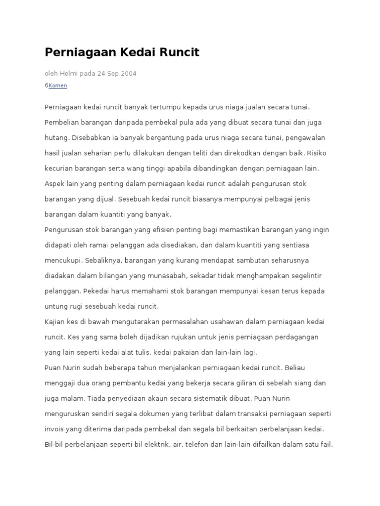 Rancangan Perniagaan Contoh Kertas Kerja Perniagaan Kedai Runcit