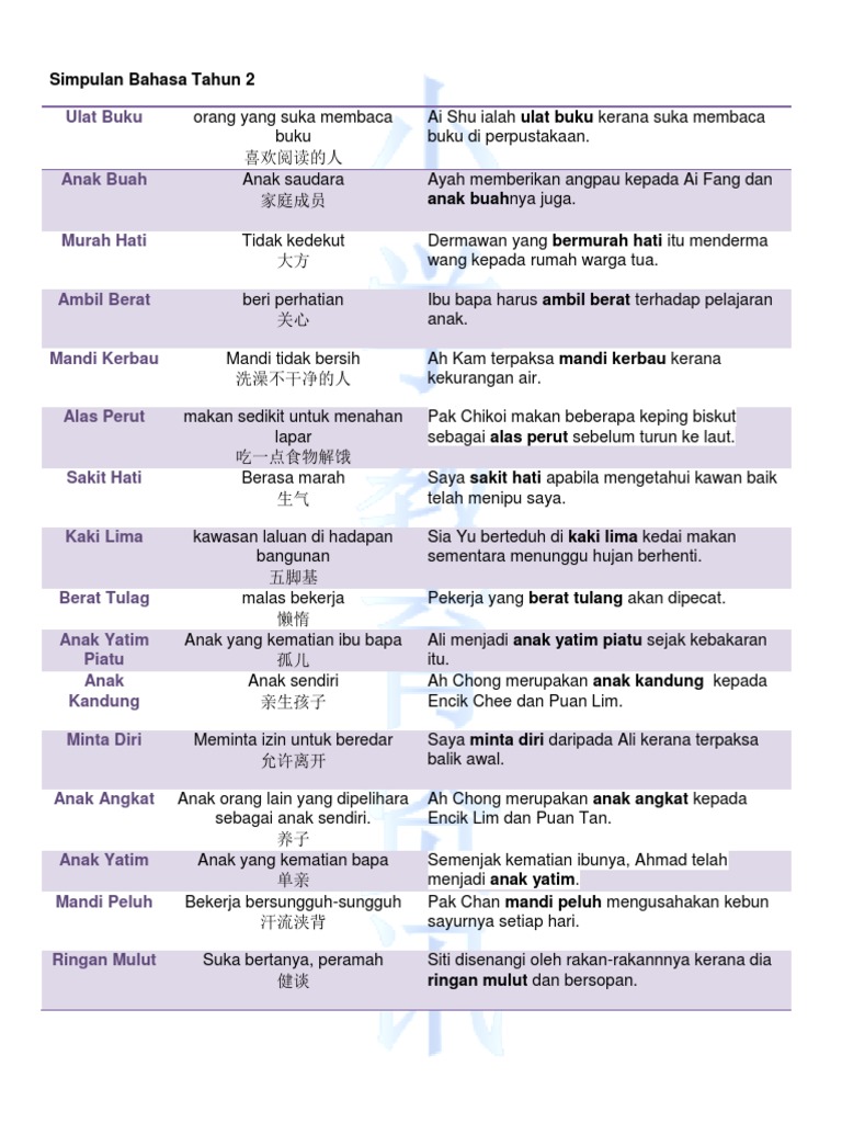 Bahasa malaysia sekolah rendah tahun 2. Koleksi soalan dan latihan bahasa melayu tahun 2 jawapan. Latihan simpulan bahasa melayu upsr tahun 6. Bahagian ini menyediakan 20 soalan peribahasa melayu untuk pelajar membuat latihan.
