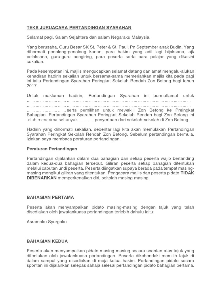 September 22 2014 by admin 0. Peraturan pertandingan syarahan agama menengah sekolah sekolah kementerian pelajaran malaysia 2010 1. Teks syarahan agama bahasa melayu sekolah menengah tajuk. Pertandingan dijalankan dalam dua bahagian dan setiap peserta wajib bertanding dalam kedua dua bahagian tersebut.