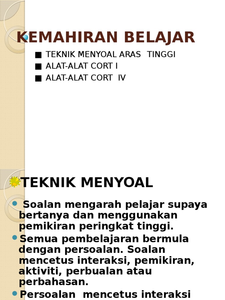 Kemahiran belajar teknik menyoal aras tinggi alat alat cort i alat alat cort iv disediakan oleh.