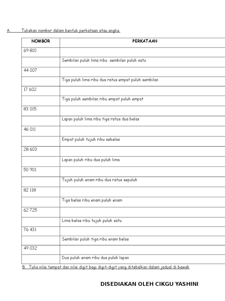 Tulis Nombor Dalam Perkataan Dan Angka
