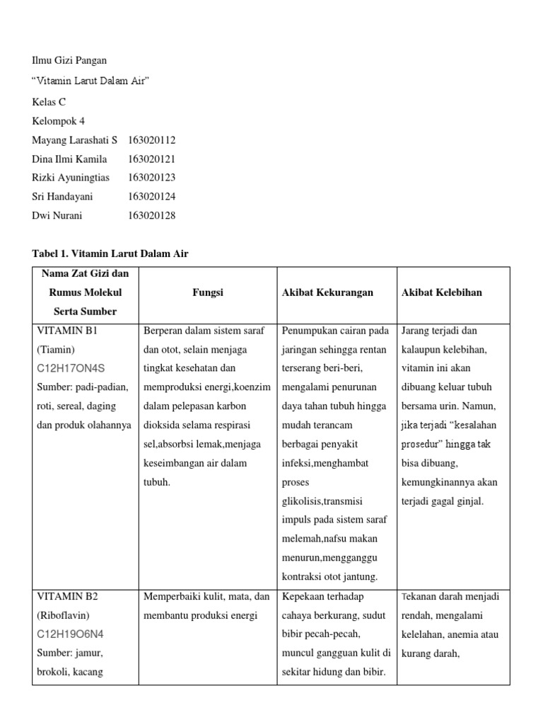 Tiamin merupakan kristal putih kekuningan yang larut air. A vitamin b1 tiamin vitamin ini merupakan satu satunya vitamin yang untuk pertama kalinya ditemukan di indonesia 1897 oleh sarjana belanda yang bernama eijkman. Vitamin larut air adalah vitamin yang larut dalam air dan siap untuk diserap ke dalam jaringan tubuh untuk segera digunakan. Berbeda dengan vitamin larut dalam air vitamin larut.